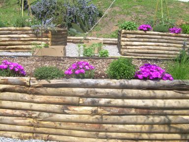 -Costruzione di palizzata con pali in castagno scortecciati; -Apertura tracce per passaggio tubi per irrigazione; -Livellamento del terreno con aggiunta di terriccio per prato pronto e piantuma...